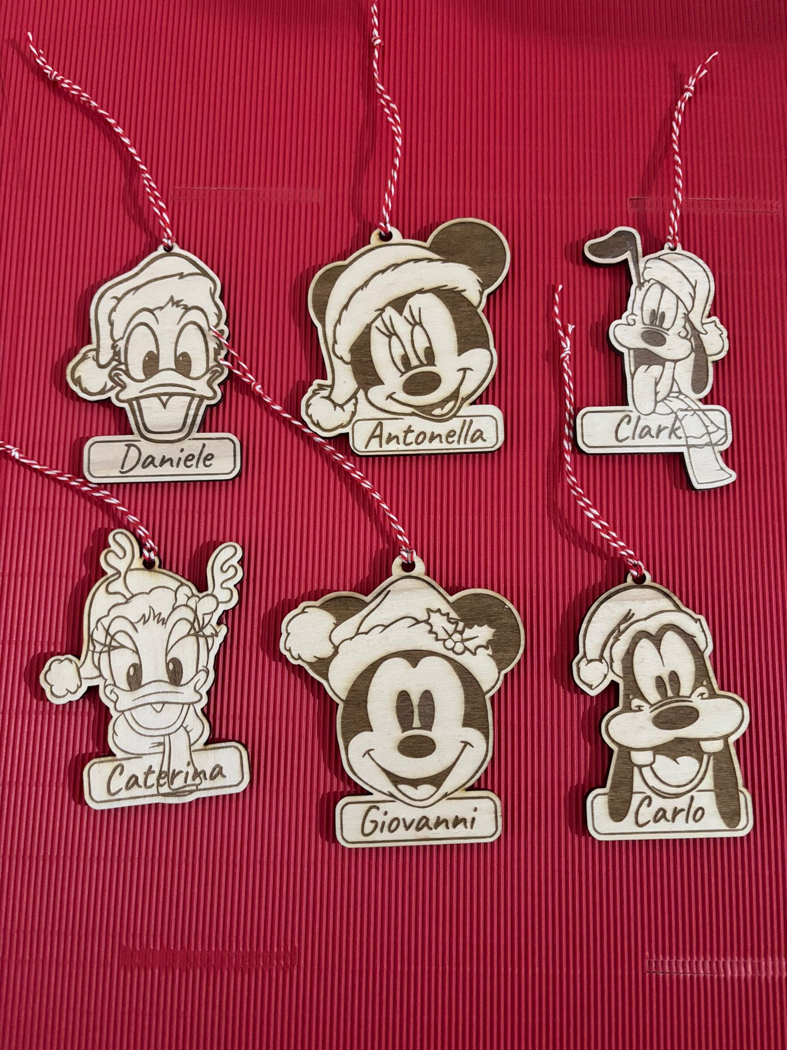 Palline natalizie in legno incise a tema Disney, personalizzate con il nome e il personaggio che preferisci. Perfette per l’albero, per un regalo unico o per decorare la casa con un tocco dolce e divertente. Realizzate artigianalmente!